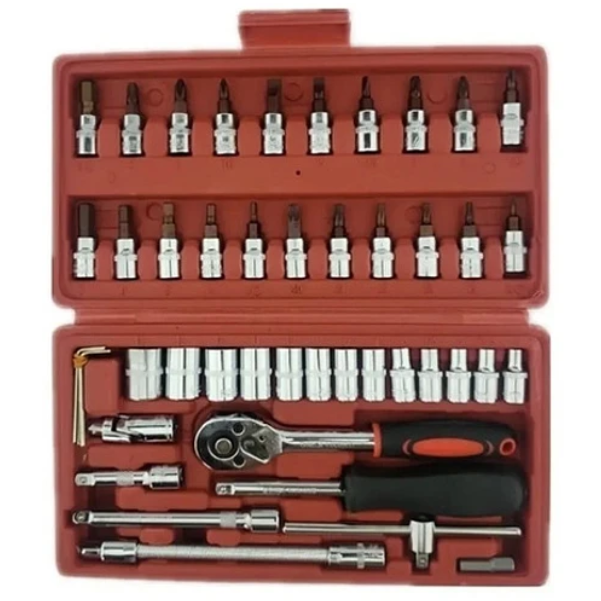 Lleva tu caja de herramientas al siguiente nivel con nuestro Caja de herramientas de 46 piezas. Enfrenta cualquier desafío de reparación automotriz con este juego de